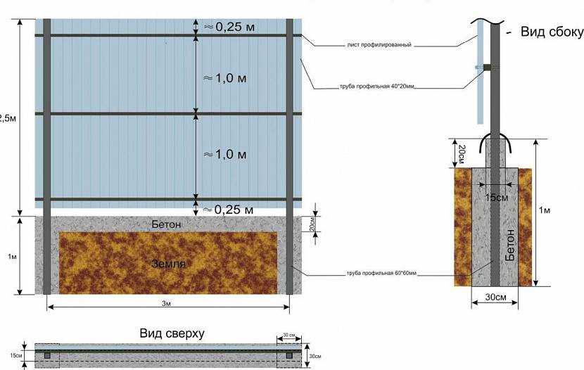 Подробная схема монтажа забора из профильного листаИсточник plus.google.com