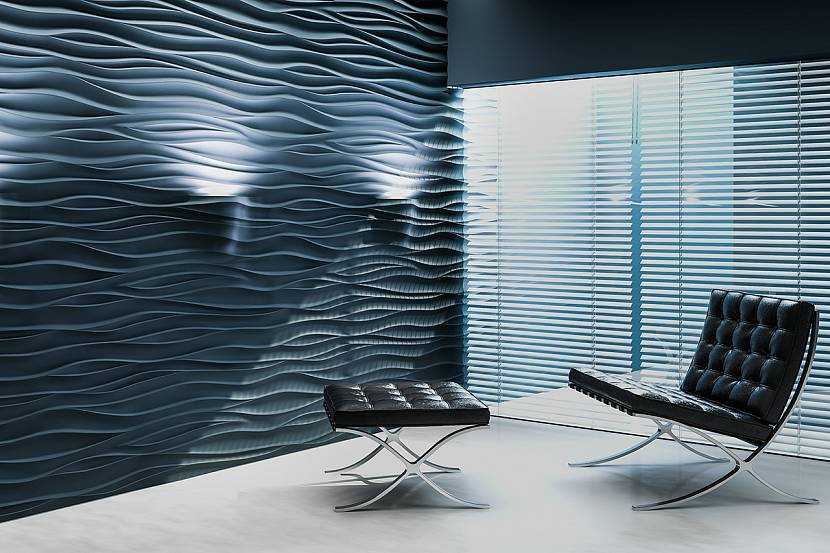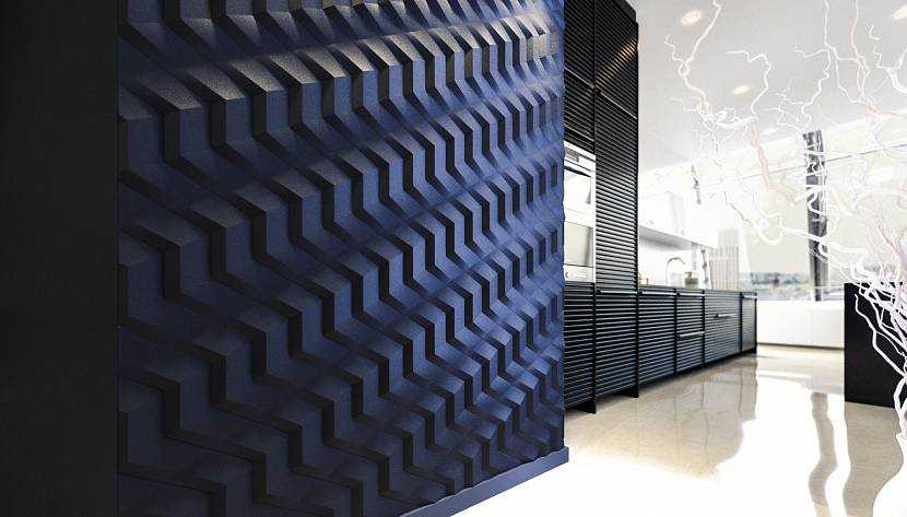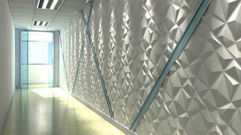 - Украсить интерьер помещения. Объемный декор преображает вид комнаты или любого иного пространства буквально в одно мгновение. Такой дизайн выглядит свежо и законченно, причем дополнительных украшений для стены, оформленной 3D-панелями, уже не потребуется.