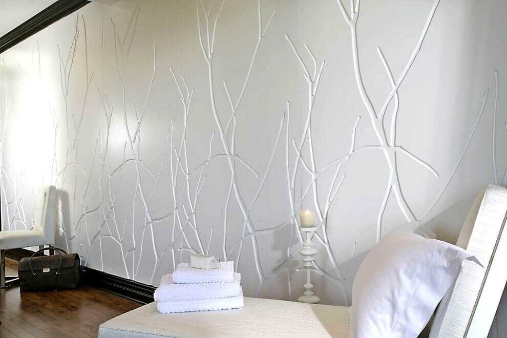 Сама по себе рельефная стена даже белого цвета является достаточно заметным декором