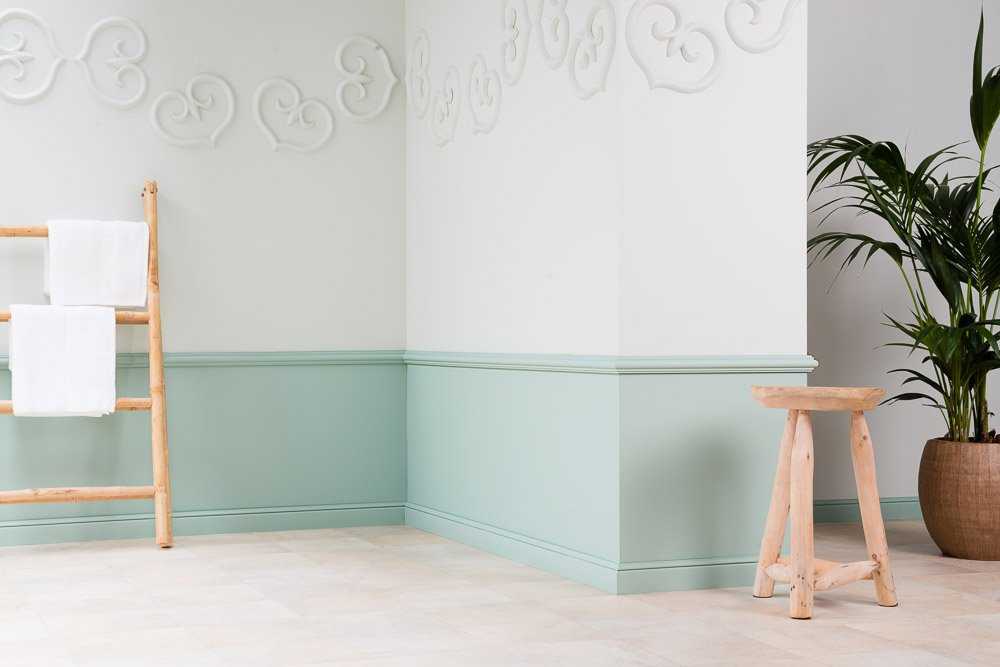 - Под цвет перегородок и стен — подходит только однотонным вариантам отделки стен. Если на перегородках есть какие-то изображения, то от плинтуса под их цвет лучше отказаться — смотреться такой вариант не будет. Подбирать плинтус в тон в этом случае нужно после того, как отделка стен выполнена. Он должен идеально сочетаться по цвету. Визуально такой вариант позволит увеличить стены. Оптимальное решение для малогабаритных квартир.
