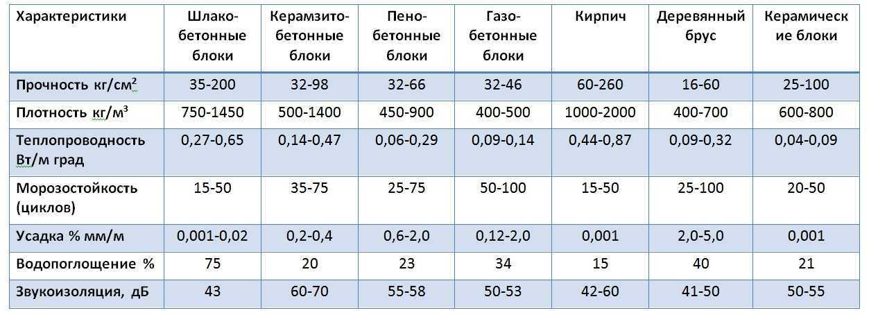 | характеристика | единицаизмерения | шлакоблоки | газоблоки | пеноблоки | керамзитоблоки | арболитовые блоки | теплая керамика |