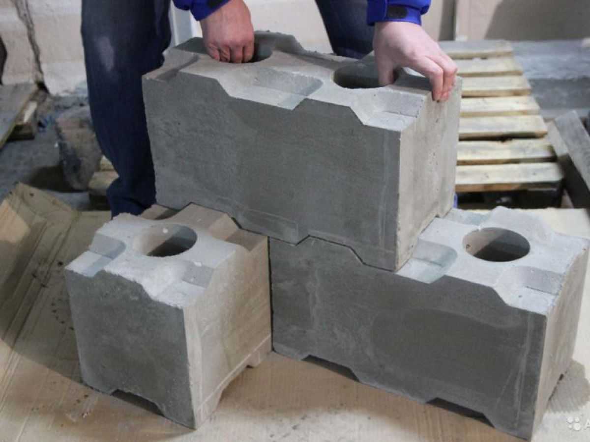 Обычный блок весит от 10 до 20 кг в зависимости от внутреннего наполнителя, плотность материала составляет 500-1500 кг/м3. Основная сфера применения – хозяйственные постройки, заполнение заборов и оградок, перегородки.