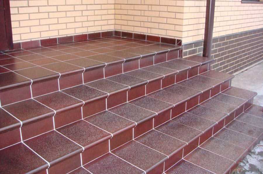 Вторым по популярности местом, где плитка из керамогранита считается приоритетным решением — это лестницы. Облицовка ступеней производится аналогично укладке плит на пол или грунт.