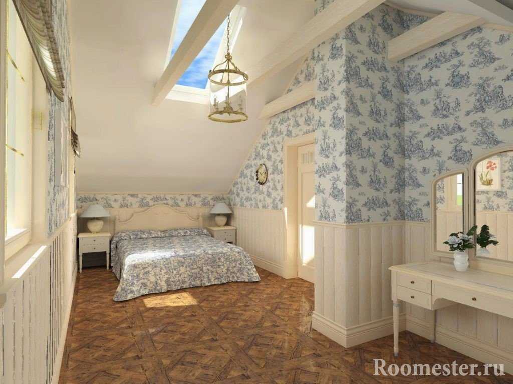 Однако нижняя плоскость комнаты будет казаться меньше реального размера, поэтому важно продумать, какими будут полы спальни