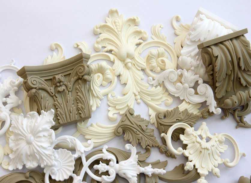 Полиуретан — более дорогой полимерный материал, весьма реалистично повторяющий текстуру гипсовой лепнины. Он не боится высоких и низких температур, устойчив к влаге и ударам. Некоторые производители выпускают декор с эффектом состаренной поверхности. Есть материалы с повышенной гибкостью, которые отлично подойдут для неровных участков, а также эркеров и колонн (такие изделия имеют соответствующую отметку производителя).