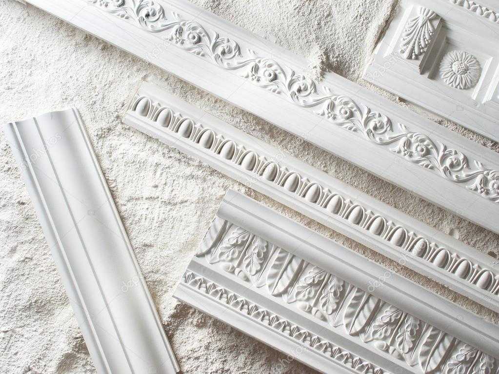 Этот материал традиционно используется для изготовления лепных украшений. Сложные фигуры отливаются в формах, простые создаются при помощи шаблона на месте. В магазинах продают готовые элементы для декорации потолков и стен: розетки, карнизы, фризы, молдинги, кессоны, рельефные 3D-панели, панно, колонны, балюстрады и т. п. Если есть опыт, можно приобрести сухие смеси, из которых затем самостоятельно сформировать любой узор.