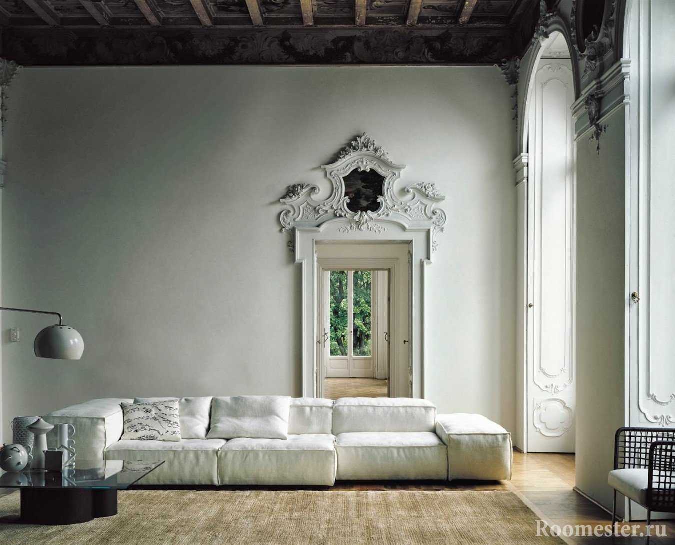 Лепнина – отличный способ создать имитацию кессонного потолка, но при этом более дешевого, легкого и изящного. Интереснее будут выглядеть проемы, декорированные гипсовой лепниной. Часто современные интерьеры украшают барельефы.