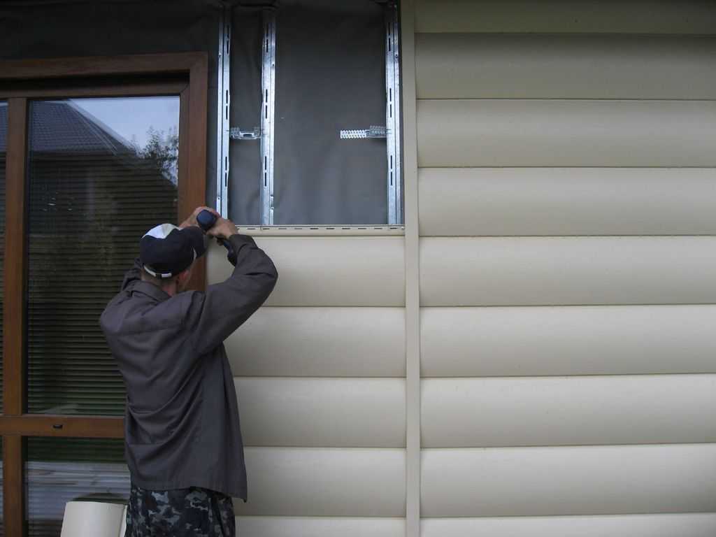 После этого выполняется облицовка дверных и оконных проемов. Для этого предназначен специальный J-профиль. Перед началом основного этапа монтажа в проемы обязательно укладывается гидроизоляция. После этого заготавливаются наличники на верх, низ и 2 боковые стороны. То есть в сумме нужно 4 наличника. При этом длина всех элементов должна соответствовать высоте и ширине проема плюс двум высотам профилей.