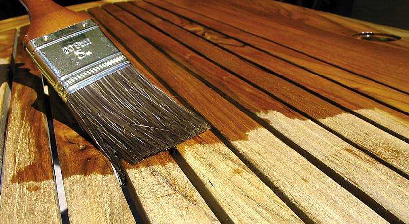Во время обработки вертикальных изделий двигаются снизу вверх. Если состав будет стекать, подтеки останутся почти незаметными. Для обработки по горизонтали водят кистью вдоль волокон, затем поперек, а потом снова вдоль