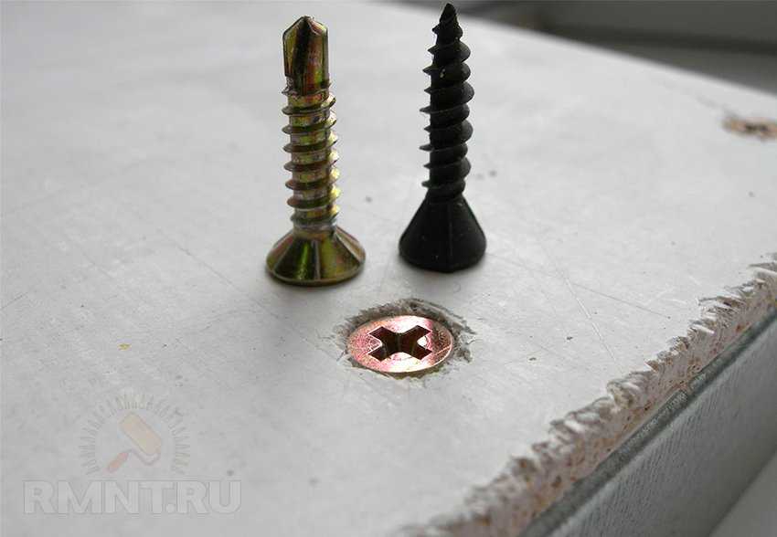 Это не так важно при многослойной обшивке, но на лицевых поверхностях приходится использовать либо самозенкующиеся шурупы, либо рассверливать потай сверлом, что нивелирует преимущество в скорости работы с лёгким материалом.