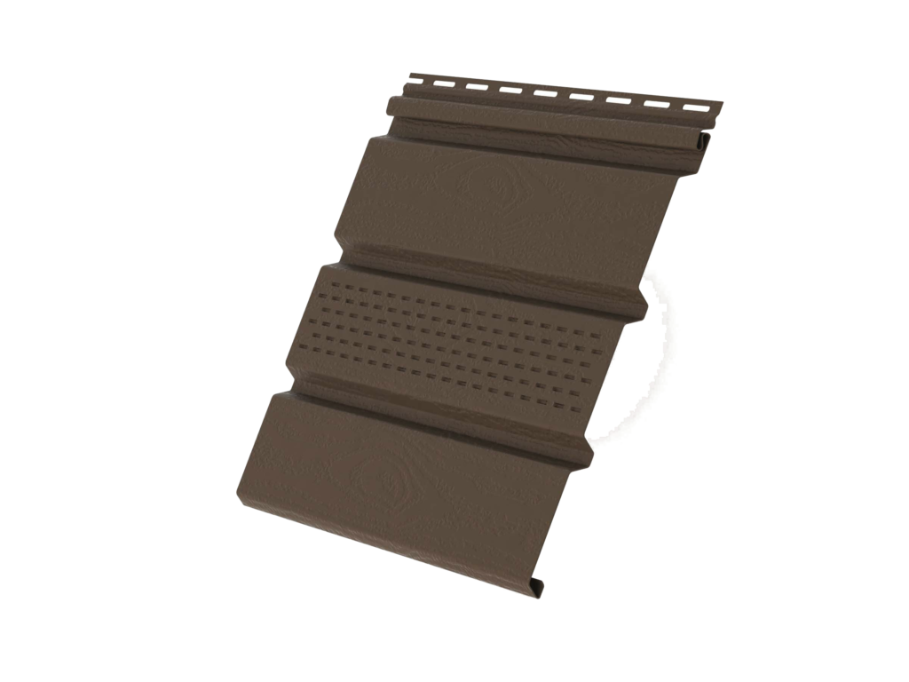 Софитные панели бывают тройные, двойные и одинарные, сплошные (для фронтонов) и перфорированные (для карнизов).