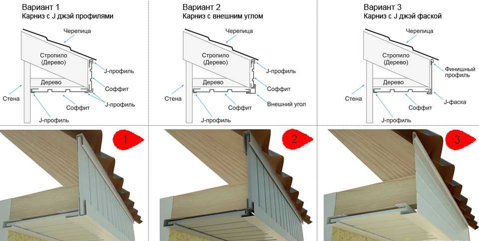 - софит необходимой ширины вставьте в пазы J-профилей и наружного угла, зафиксируйте саморезами.