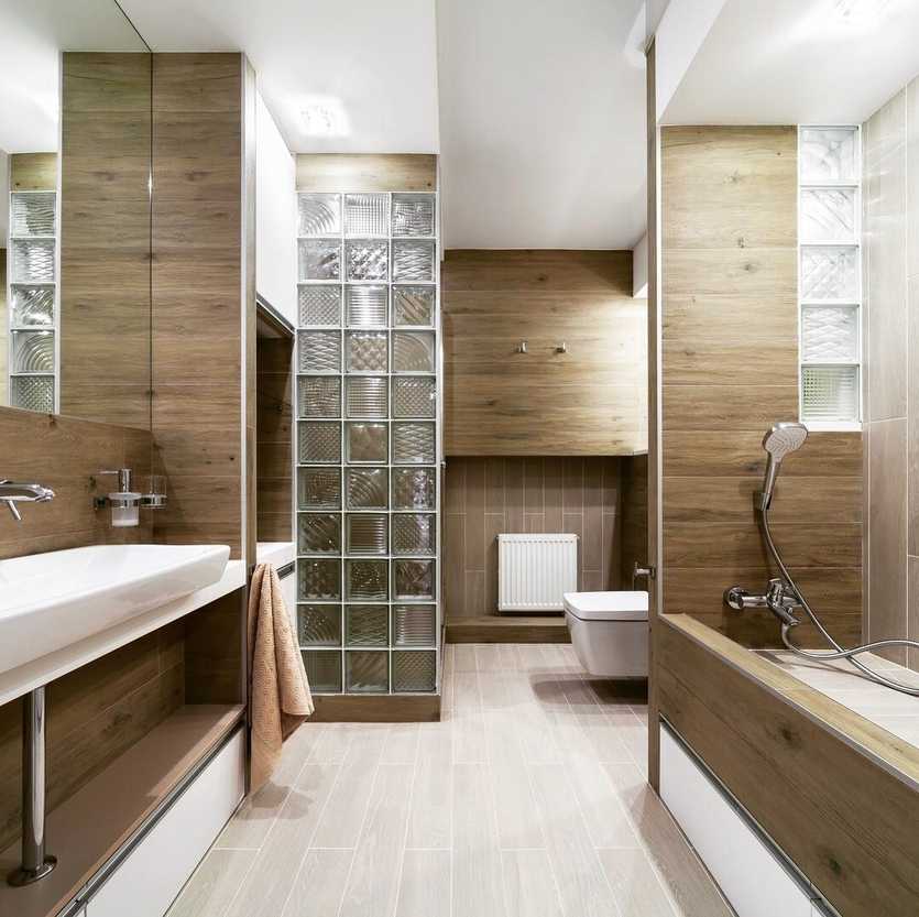 Гамма возможностей, предоставляемая владельцу жилья, решившегося на оформление кабинки в ванной блоками со стекла, неограниченная. Варианты декора реализуются как путем укладки в хаотичном порядке, так и последовательно или ромбом. В зависимости от размеров блоков, разнится и техника укладки. Также есть возможность экспериментировать, применяя матовые или глянцевые полупрозрачные блоки с нужными цветовыми оттенками.