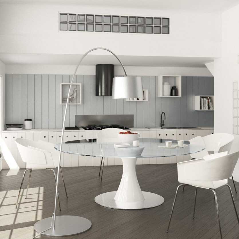 На кухне перегородкой из стекла можно соорудить визуальное разграничение между зоной самой кухни (где готовится пища) и столовой. За полуматовым стеклом отлично будет видны силуэты обедающих людей, но помешать им из второй зоны будет тяжело, так стекло отлично поглощает шум.