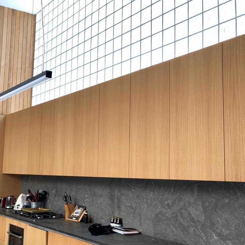 Столешницы и перегородки шкафчиков отлично войдут в современный дизайн кухонь. Органично будет смотреться столик на блоковой “ножке”. Светильник на кухне, представляющий из себя лампочку внутри блока добавит уюта и света.