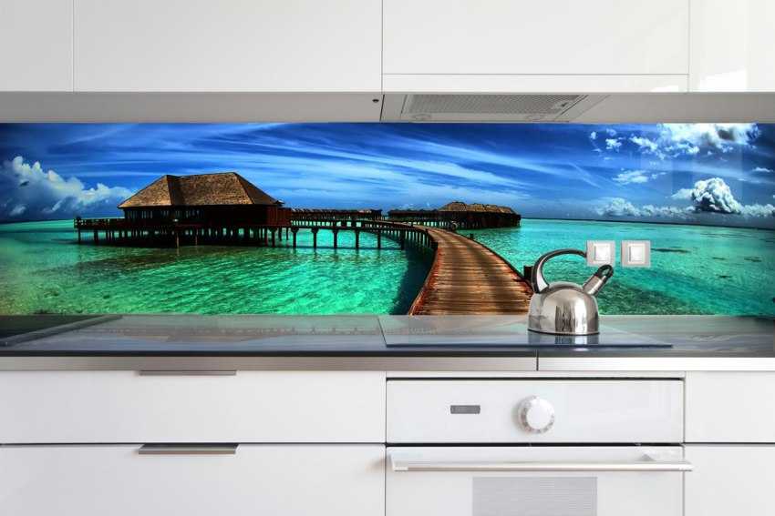 Влагостойкие панели и стеклянные скинали украшают самыми разнообразными фото, подбираются которые в стиле всего интерьера кухни и в зависимости от ее цветовой гаммы.