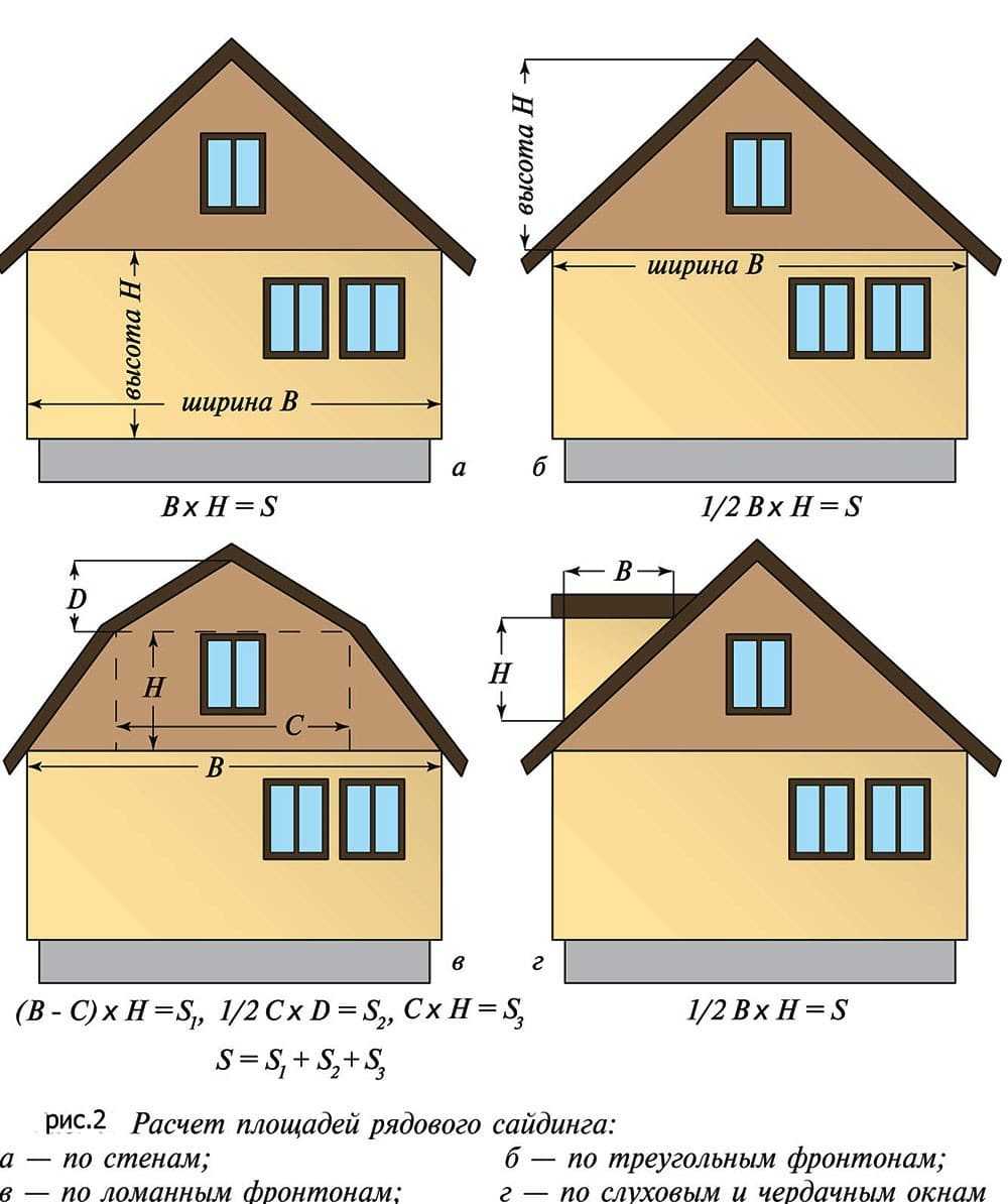 Внешние поверхности любого строения можно разделить на геометрические фигуры: квадраты, прямоугольники, треугольники. Для облегчения процесса можно воспользоваться этим приемом, измерив сначала отдельные элементы стен, а после сложив получившиеся значения.