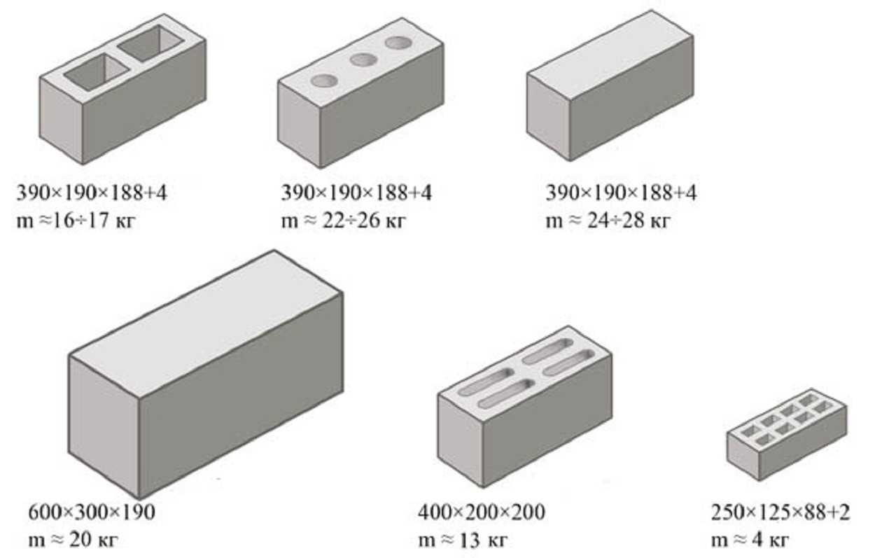 Виды и масса стеновых блоков