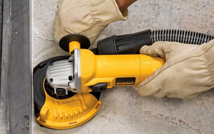 Перед началом работы необходимо присоединить к УШМ насадку на болгарку для пылесоса. К ней фиксируется трубка, которая требуется для отвода пыли и более крупных частиц. Во время работы необходимо крепко держать инструмент, чтобы исключить возможность соскакивания дисков.