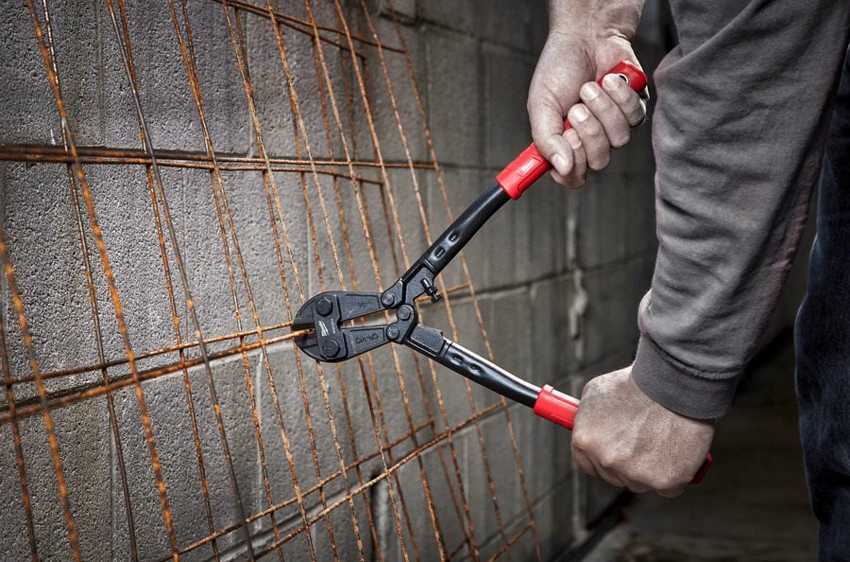 Наиболее простой и доступный вариант — ручные арматурные ножницы. В большинстве случаев достаточно болторезов длиной от 14 до 24 дюймов, инструмент большей длины необходим только для решения специальных задач.