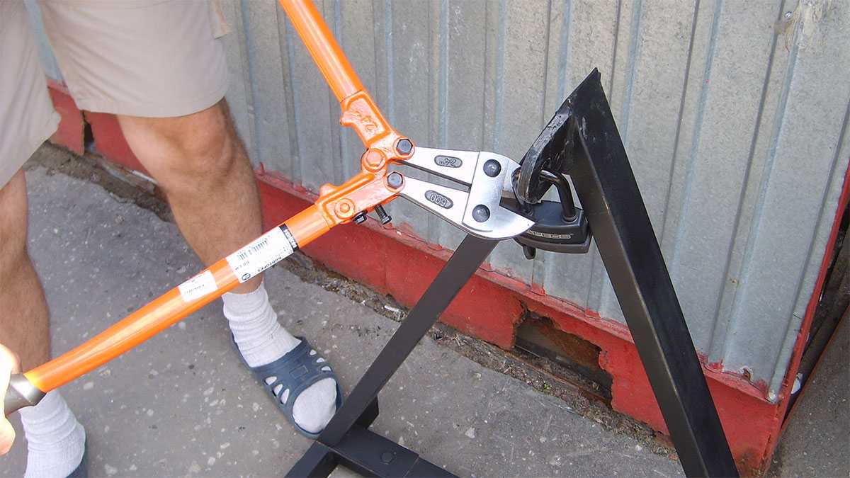 - Зафиксировать болторез в исходном положении. Особенно это касается инструмента больших размеров, который трудно удержать на весу.